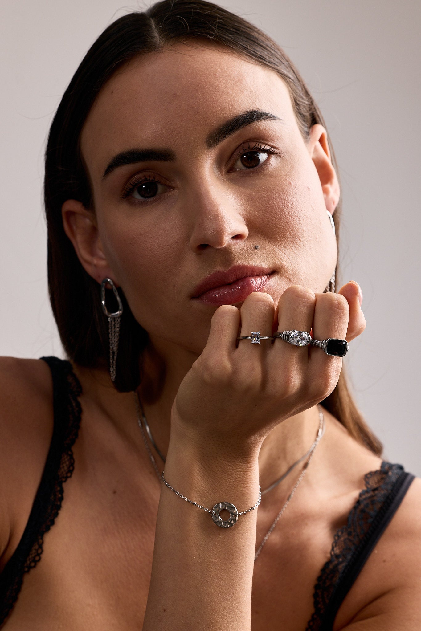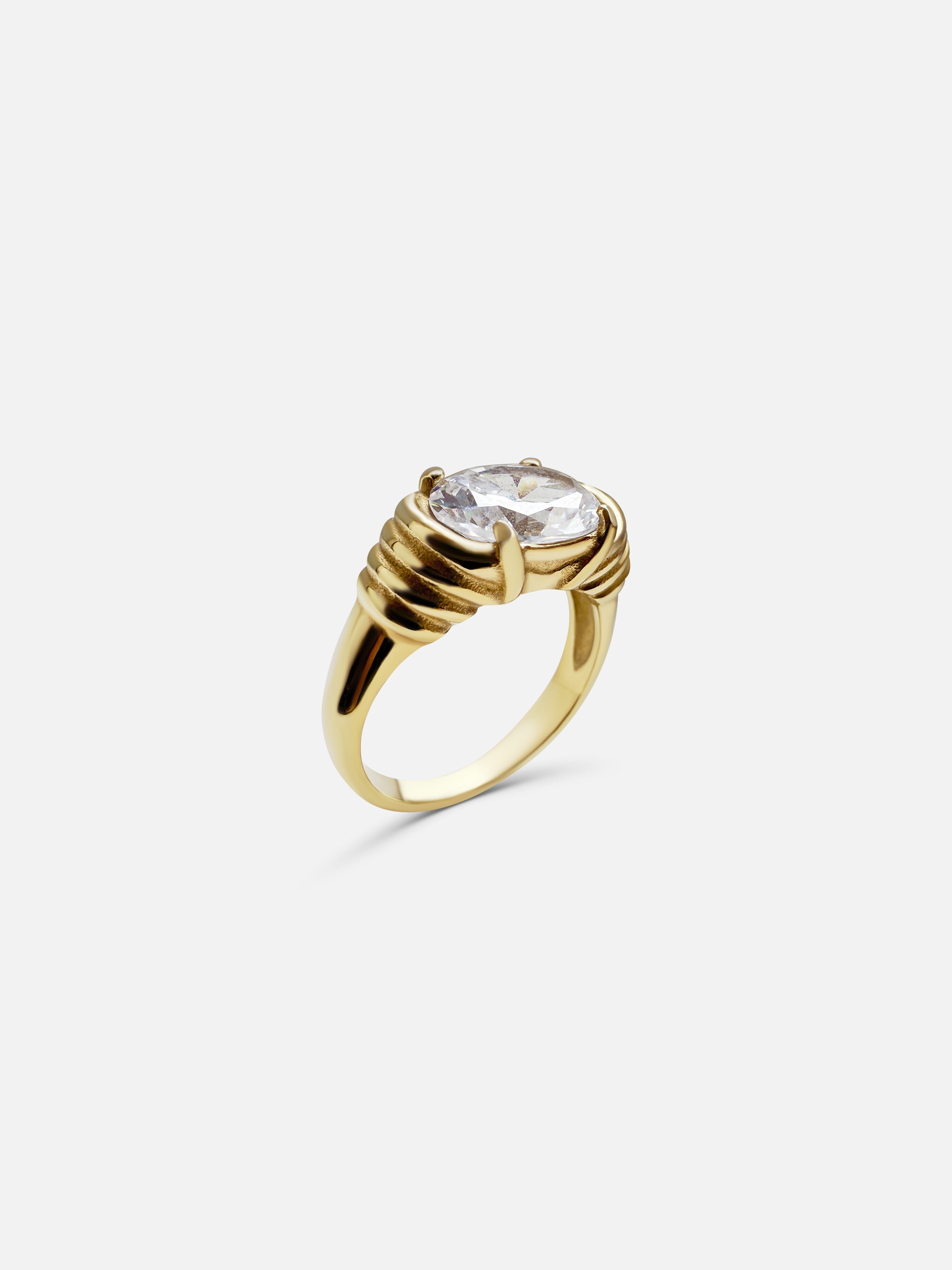 Elevate your style with our Maldives Mystic Ring, featuring a large, dazzling zirconia on a sleek threaded band for a bold, luxurious statement perfect for any occasion.