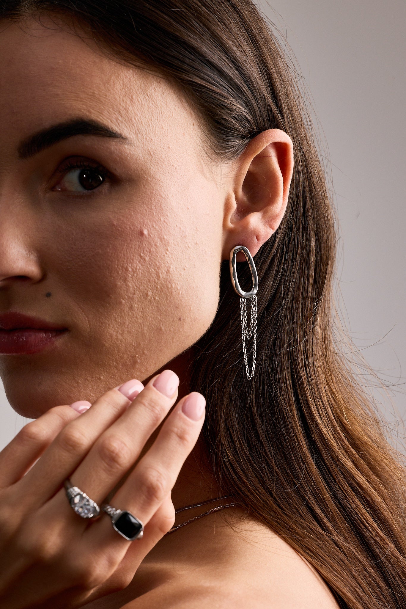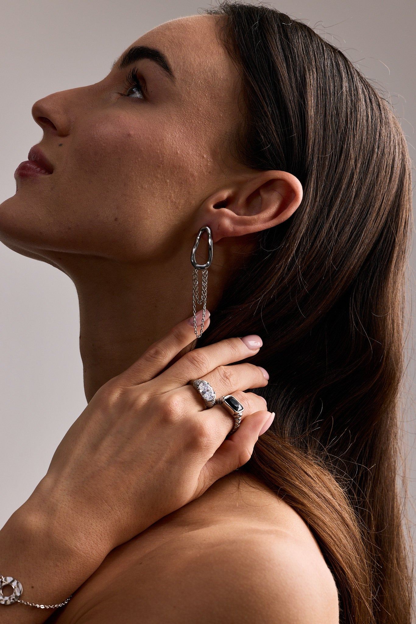 Our silver jewelry pieces are crafted from high-quality stainless steel, known for its durability and resistance to discoloration. Our gold pieces are covered in a ultra-thick layer containing 18K gold.