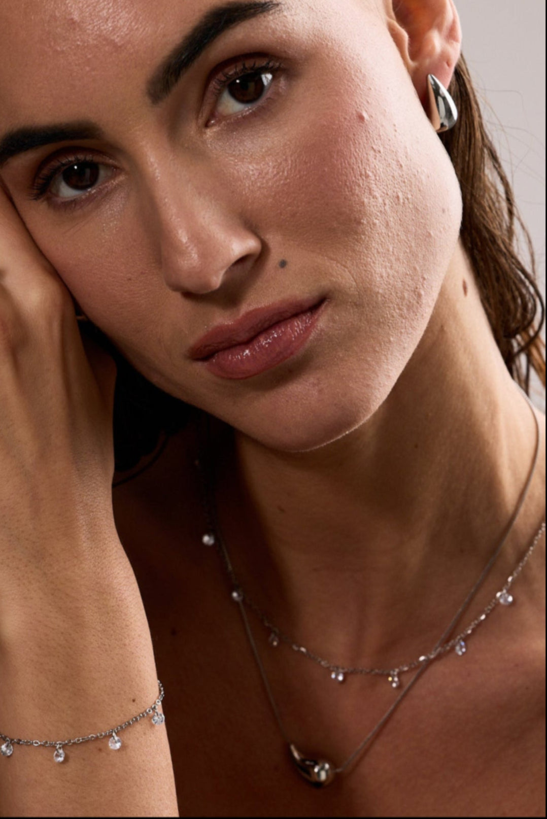 Our silver jewelry pieces are crafted from high-quality stainless steel, known for its durability and resistance to discoloration. Our gold pieces are covered in a ultra-thick layer containing 18K gold.
